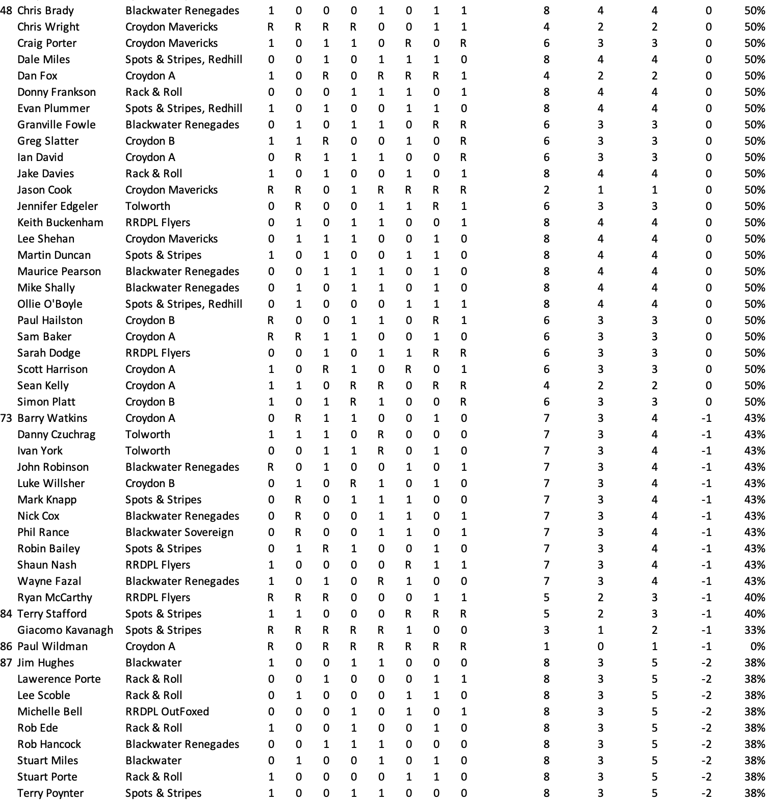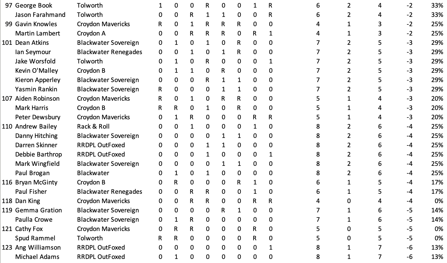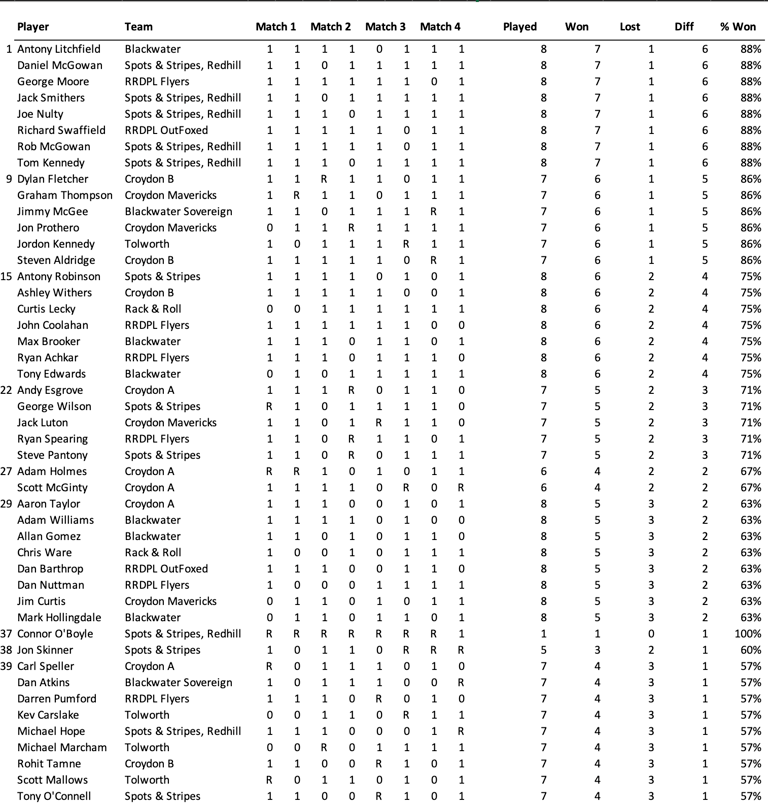 League Table and Player Stats 2025