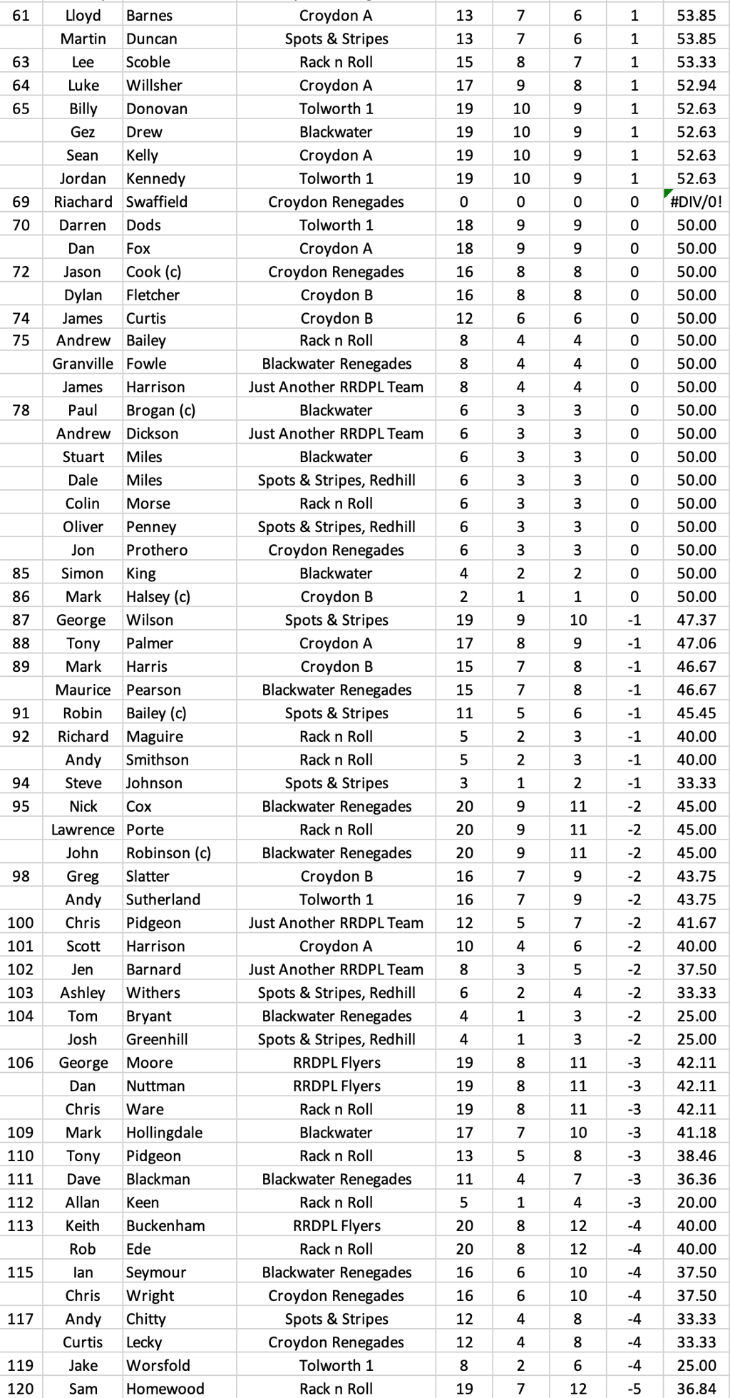 County All Time Stats