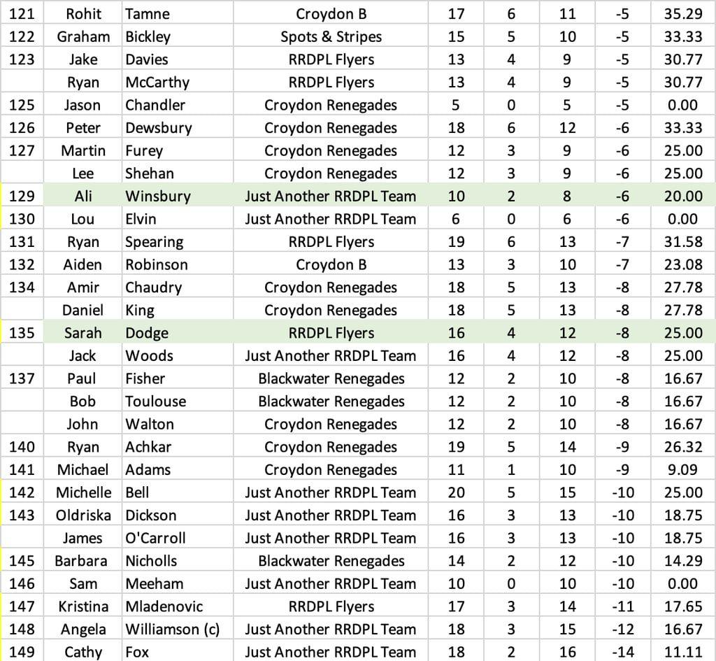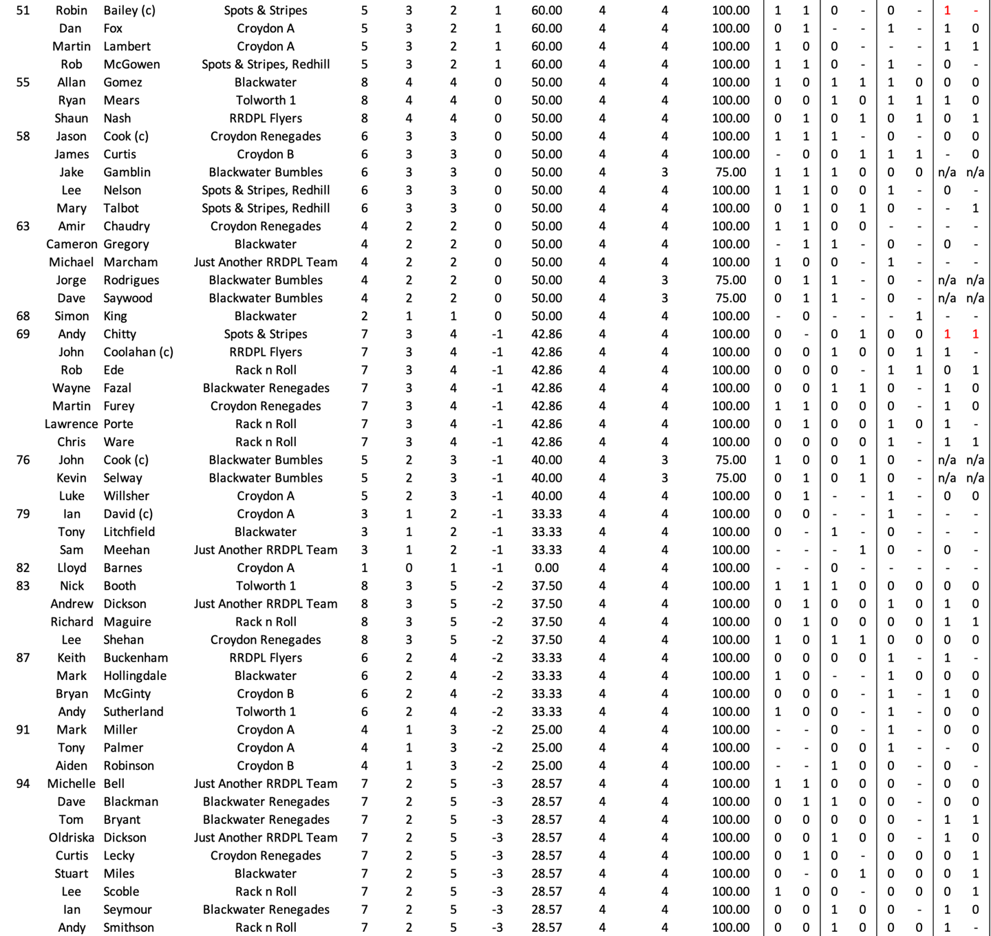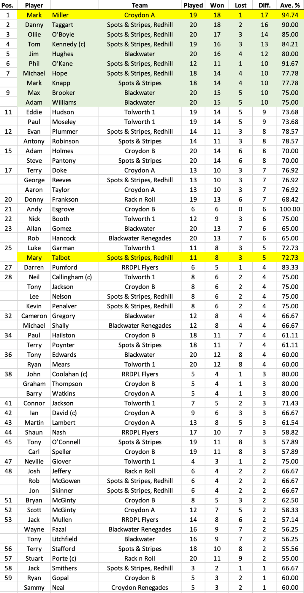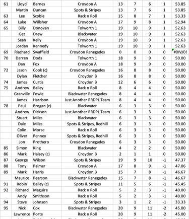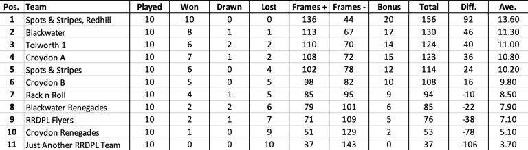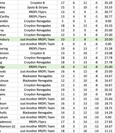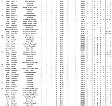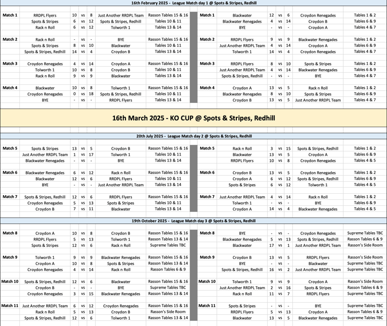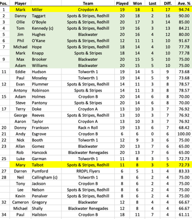 League Table and Player Stats 2025
